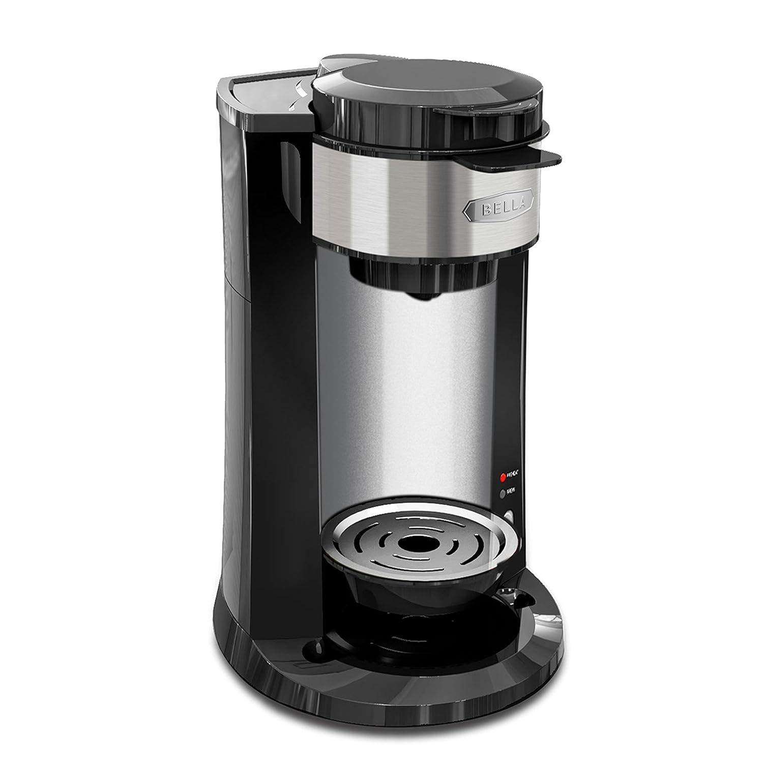 That first taste is sure to put a smile on your face. BELLA Single Serve Coffee Maker Dual Brew K-Cup Pod or Ground Coffee Brewer Adjustable Drip Tray for Personal Travel Mugs Large Removable Water Tank Black. BELLA Single Serve Coffee Maker Dual Brew K-Cup Pod or Ground Coffee Brewer Adjustable Drip Tray for Personal Travel Mugs Large Removable Water Tank Black Visit the BELLA Store 42 ratings Amazons Choice in Coffee Machines by BELLA.